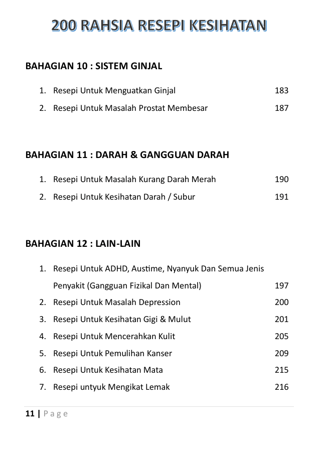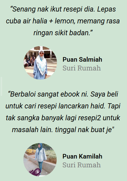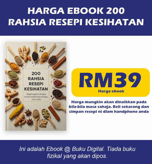 π Semua resepi mudah disediakan, hanya guna bahan yang biasa ada di dapur. Ini hanyalah antara yang diajar di dalam ebook ini. Terdapat 200 resepi lain yang mana sakit yang kerap orang Malaysia hadapi.