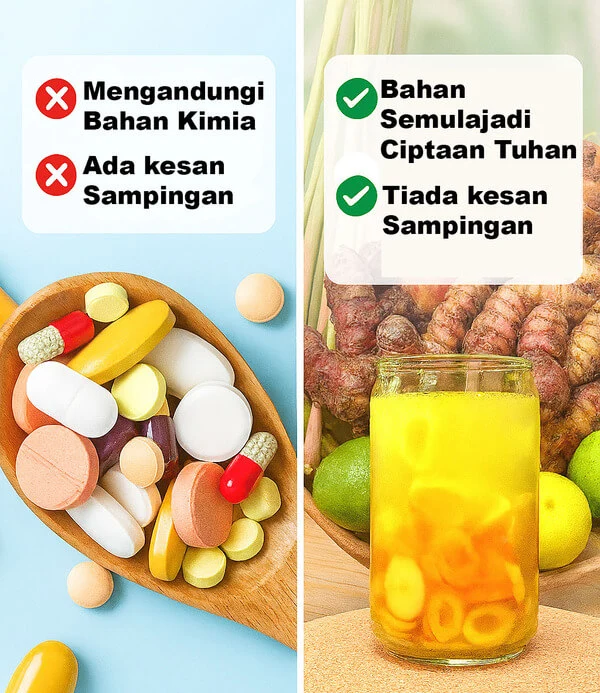 Daripada terus mengamalkan sesuatu yang tidak tahu kandungannya dan berpotensi merosakkan tubuh kita, lebih baik kita amalkan bahan semulajadi yang Allah hamparkan di bumi ini dengan berjuta manfaatnya.