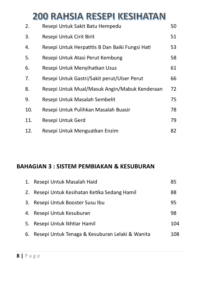 APA YANG ANDA AKAN DAPAT DARI "EBOOK 200 RAHSIA RESEPI KESIHATAN" NI?β